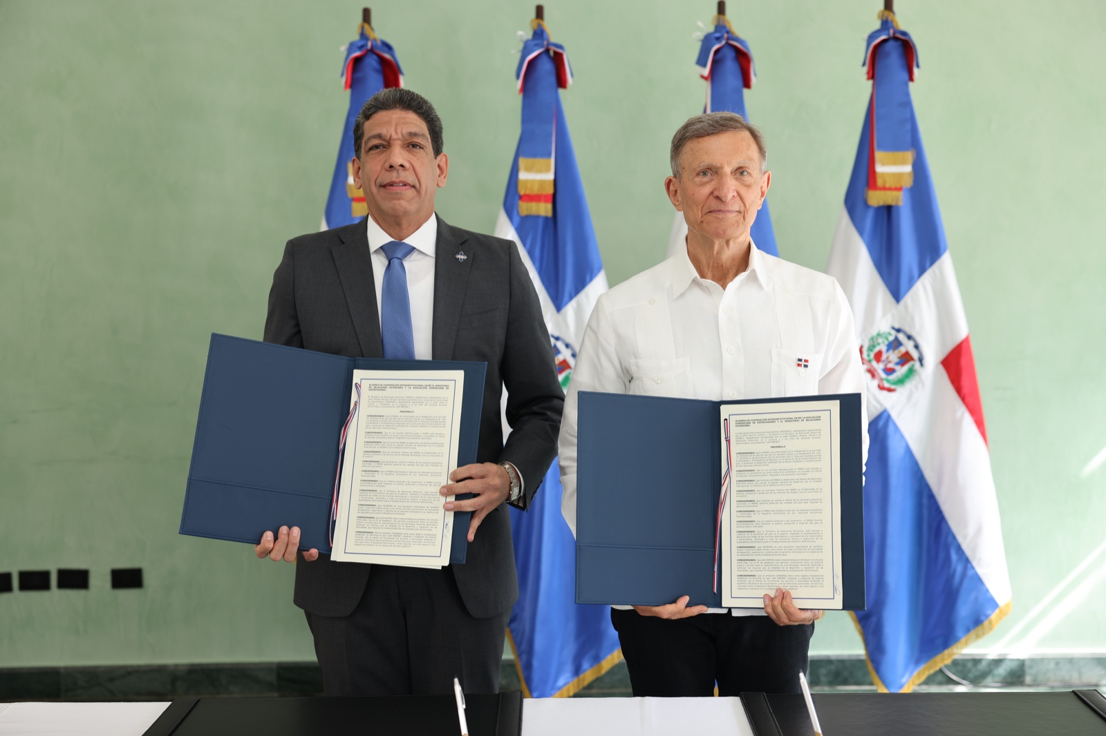 Durante el acto de firma de este acuerdo realizado en el MIREX, estuvieron presentes viceministros y directores de la Cancillería, así como representantes de ADOEXPO.