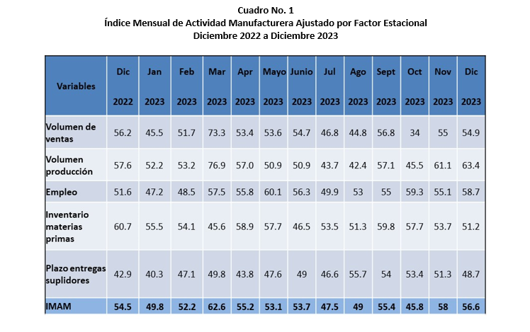 El IMAM es una adecuación del Índice de los Gerentes de Compras, (PMI por sus siglas en inglés) a la realidad del sector manufacturero dominicano, constituyendo un retrato de la actividad manufacturera de un mes con relación al anterior, de modo rápido y sencillo. Está está compuesto por cinco variables: ventas, producción, empleos, inventarios y tiempos de entrega.