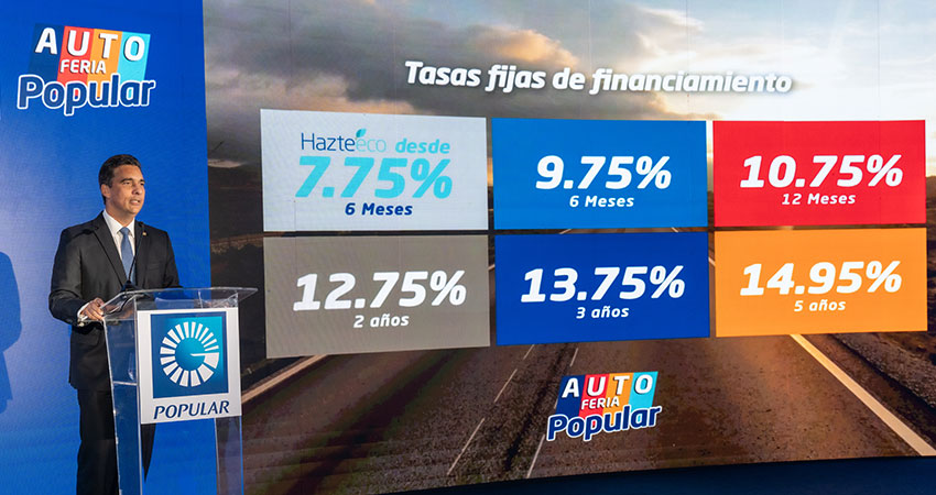 Santo Domingo, D.N. – El Banco Popular Dominicano informó que la vigésima séptima edición de la Autoferia Popular ofrecerá las tasas fijas más competitivas del mercado: 9.75% a seis meses; 10.75% a 12 meses; 12.75% a dos años; 13.75% a tres años; 14.95% a cinco años y una tasa fija especial para vehículos híbridos y eléctricos desde 7.75% a seis meses. Los vehículos usados disfrutarán también de condiciones especiales de financiamiento.