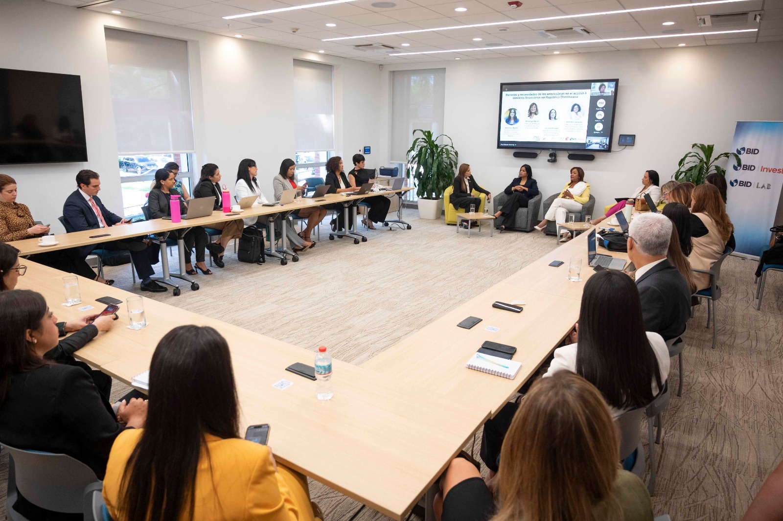 El panel, celebrado en las oficinas del Grupo Banco Interamericano de Desarrollo (BID) en Santo Domingo, estuvo integrado por Amarilys Durán, de la Federación de Mujeres Empresarias Dominico Internacional (FEM); Verónica Núñez, de la Asociación Nacional de Mujeres Empresarias, Ejecutivas y Profesionales (Anmepro); Julissa Jiménez, representante de la Asociación Dominicana de Mujeres Empresarias, así como Hilene Galán Laureano, de la Asociación Andaluza de Mujeres Empresarias del Sector del Medio Ambiente (Ansemac) y el Foro de Empresarias y Profesionales de Córdoba (FEPC).