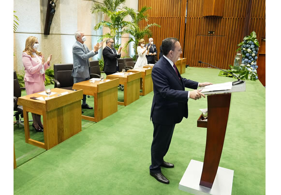 El solemne acto contó con la presencia del gobernador, Héctor Valdez Albizu, su distinguida esposa Fior Martínez de Valdez y los miembros de la honorable Junta Monetaria Ricardo Rojas León, José Manuel Mallén, Arturo Martínez Moya, Eduardo Tejera, Sergia Elena Mejía y Julio Llibre Salcedo.
