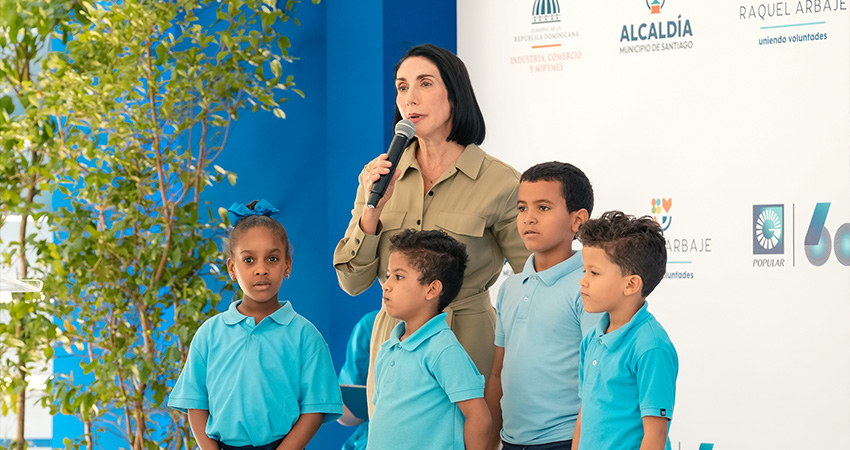 La primera dama de la República, Raquel Arbaje, expresó su agradecimiento al Banco Popular por el respaldo al proyecto de parques, que permiten aportar esperanza al país y al desarrollo de las comunidades.