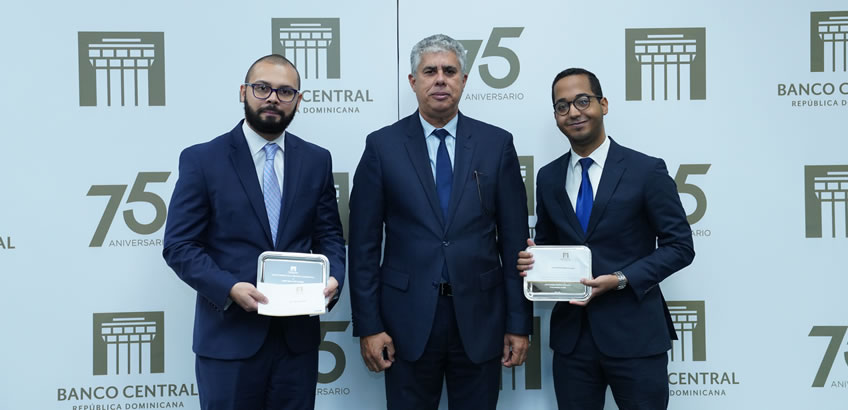 El tercer lugar, al que se le otorgó un premio de RD$250,000.00 y bandeja, perteneció al trabajo ‘Dinámica de la liquidez del mercado cambiario de República Dominicana: un análisis de cambio de régimen bajo cadenas Markov’, de los autores Georsh Maicol Paulino Victoriano y José Vidal Cruz Mejía.