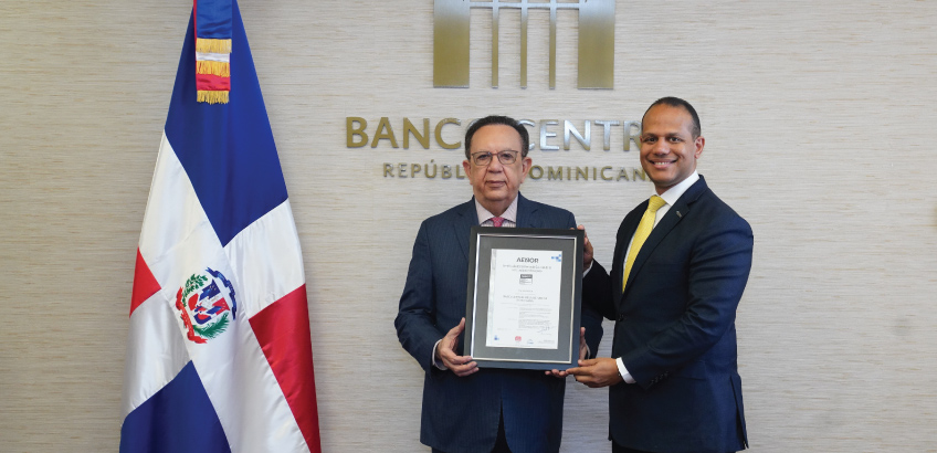 De su lado el director de AENOR Dominicana expuso que “esta certificación reafirma que el BCRD dispone de un Sistema de Gestión de Continuidad del Negocio (SGCN) alineado con las mejores prácticas internacionales, que le permite preservar la operatividad de sus procesos esenciales aun en las circunstancias más adversas, garantizando la protección de sus colaboradores, la reputación institucional y la continuidad de los servicios críticos al sistema financiero”, expresó el director de AENOR Dominicana, al momento de entregar los certificados.