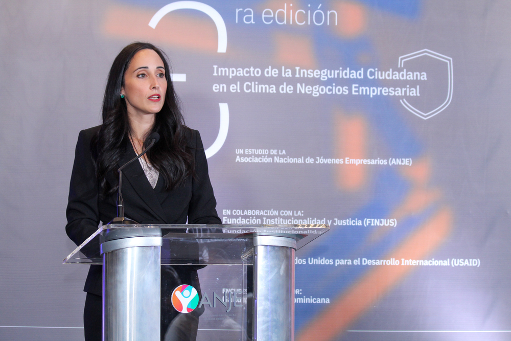 Durante el encuentro de presentación de los resultados del estudio, el cual fue realizado en el Salón Empresarial de la Torre AIRD, la presidenta de la Asociación, Susana Martínez Nadal, explicó que “con esta nueva edición afianzamos nuestro compromiso con proporcionar datos actualizados sobre el estado de la seguridad en el país desde el punto de vista del empresariado, así como, la carga económica que representa la inversión en prevención y cómo esto afecta el clima de negocios”. Agregó que los aportes de ANJE, FINJUS y USAID, con este estudio, coinciden con la Ley 1-12 de la Estrategia Nacional de Desarrollo 2030, cuyo objetivo 1.2.2 llama a “Construir un clima de seguridad ciudadana, basado en el combate a las múltiples causas que originan la delincuencia, el crimen organizado y la violencia en la convivencia social, incluyendo la violencia contra la mujer, niños, niñas y adolescentes, mediante la articulación eficiente de las políticas de prevención, persecución y sanción”.