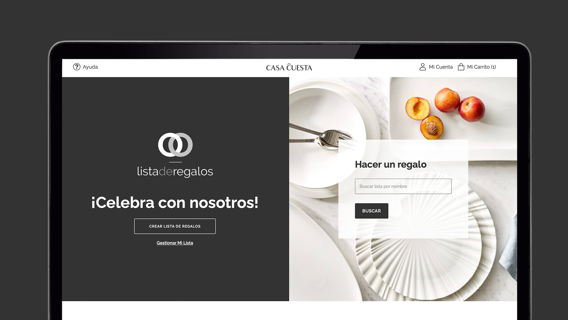 A la plataforma de Lista de Regalos se accede a través de la página web www.casacuesta.com haciendo clic sobre la pestaña “Lista de Regalos”, ahí el usuario encontrará ambas opciones, la de crear una lista de regalo y la de comprar artículos que ya se encuentran seleccionados en una lista, disfrutando así de los beneficios que Casa Cuesta ofrece con este proyecto.