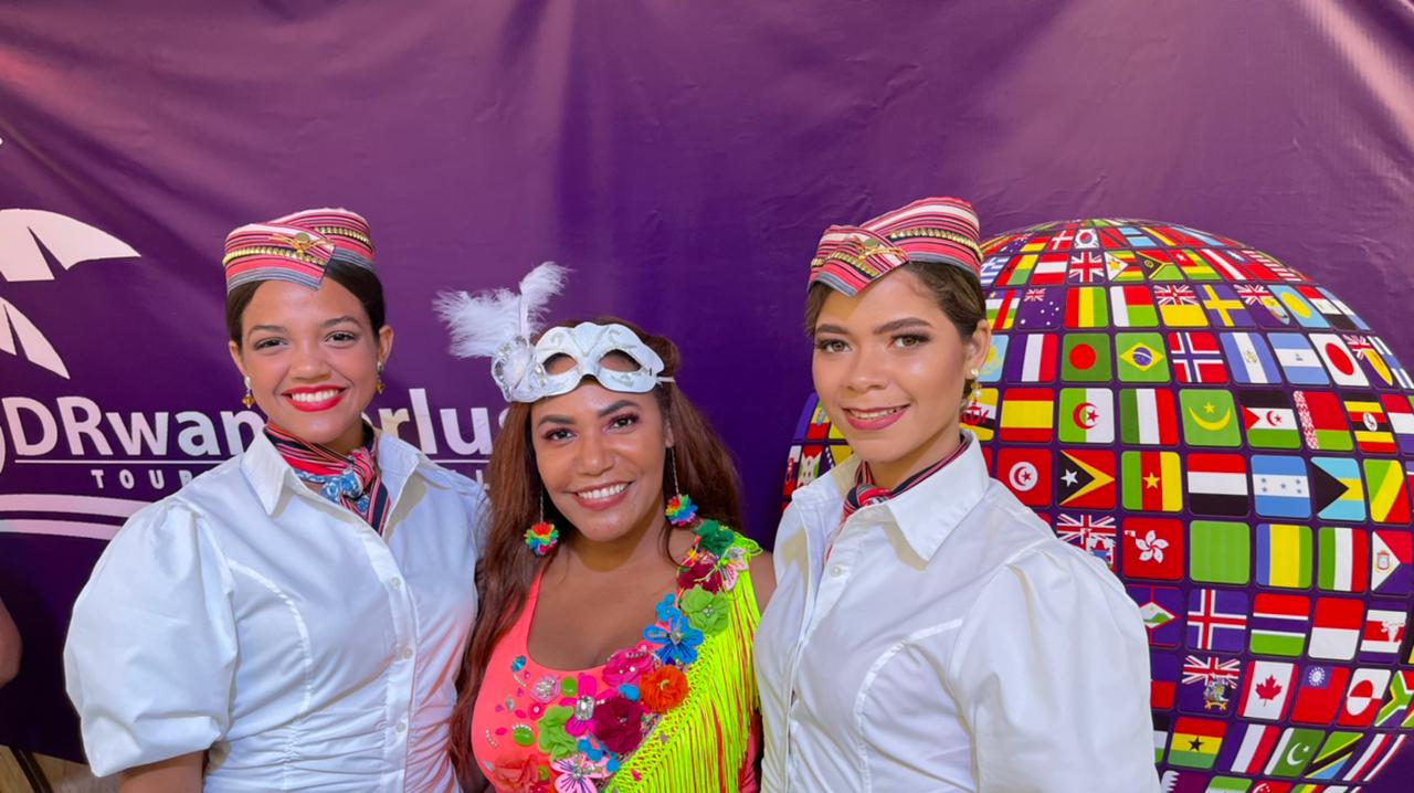 La tarima VIP de DR Wanderlust contó con detalles que caracterizaron una cabina de avión, las anfitrionas simularon ser las azafatas y las invitaciones fueron pases de abordajes, de ese modo, como si fuera una escena previa al viaje de sus sueños, se recibieron las bellas comparsas del carnaval.