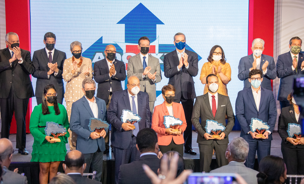 Santo Domingo, R.D. 16 de noviembre de 2021.- En una ceremonia encabezada por el presidente Luis Abinader, la Asociación Dominicana de Exportadores (Adoexpo) entregó los reconocimientos a la Resiliencia Exportadora 2021 a 7 empresas de ese sector que impulsaron significativamente el fortalecimiento de esa área productiva y por llevar a cabo iniciativas que aportaron al desarrollo social del país.