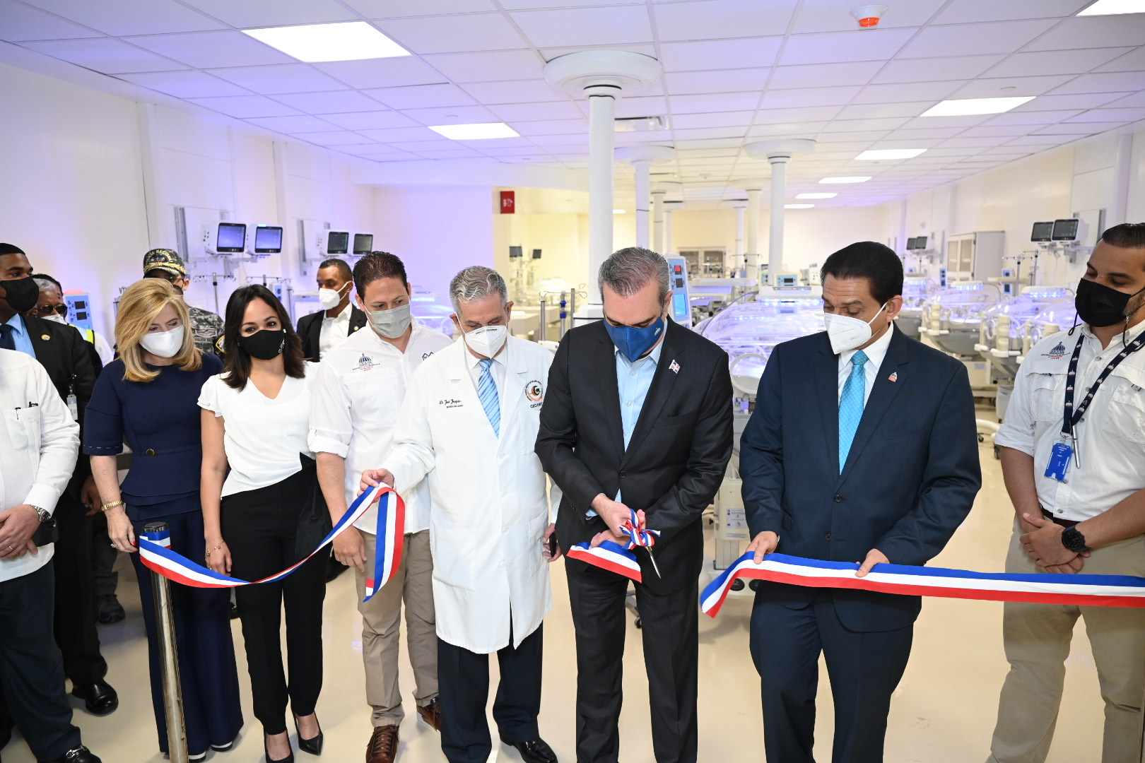 Santo Domingo, RD. Mayo 17, 2021.- El Presidente de la República, Luis Abinader y el Director General del Instituto Nacional de la Vivienda (INVI), Carlos Bonilla, entregaron este lunes, para su puesta en funcionamiento, los bloques B1 y B2, así como los Centros de Seguridad y Monitoreo y de Patología Forense, de la Ciudad Sanitaria, Luis Eduardo Aybar.