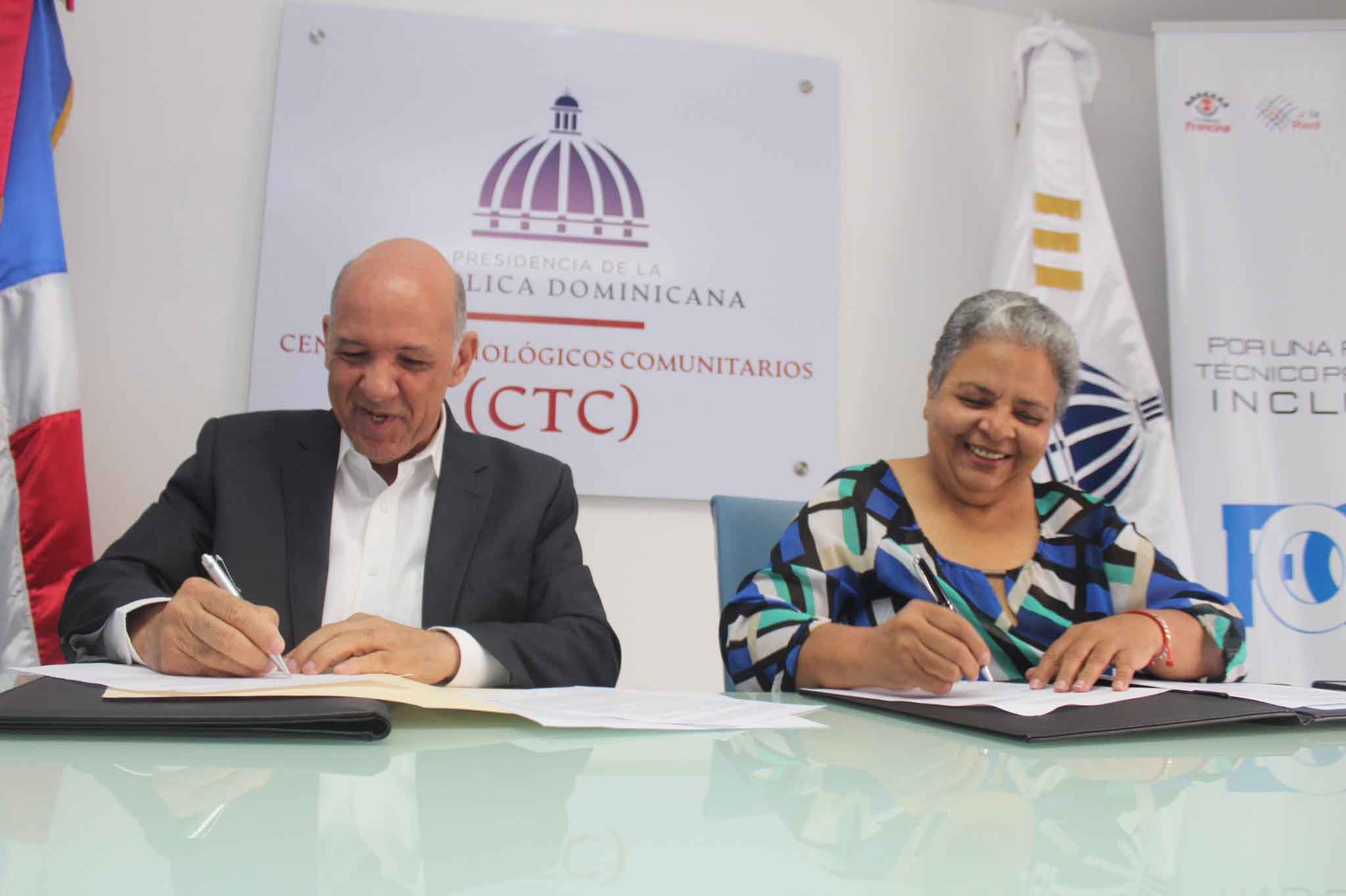 Santo Domingo, R.D. Abril 21, 2022.- La Red de Entidades de Personas con Discapacidad Física, (La Red), y los Centros Tecnológicos Comunitarios (CTC), firmaron un convenio de colaboración mediante el cual se comprometen a colaborar en la inclusión de personas con discapacidad y la realización de pasantías en los programas formativos que los CTC ofrecen en comunidades vulnerables en todo el país.