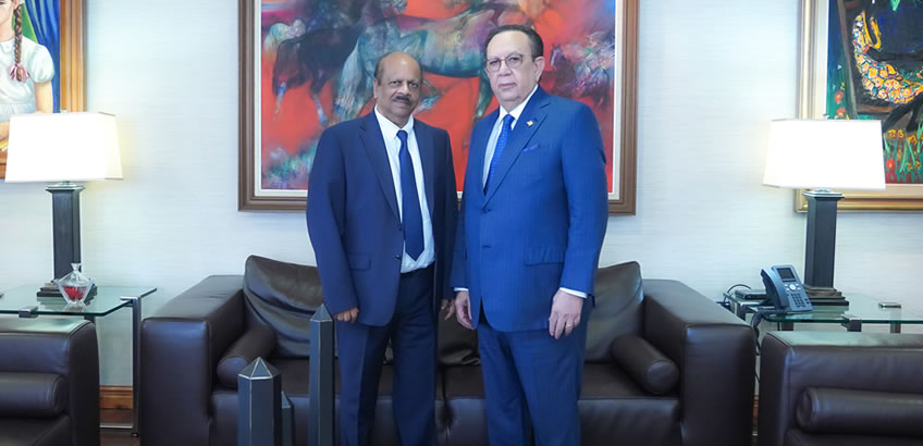 Santo Domingo. República Dominicana. El gobernador del Banco Central de la República Dominicana (BCRD), Héctor Valdez Albizu, recibió la visita del gobernador del Banco Central de la República Cooperativa de Guyana, Dr. Gobind Ganga, a fin de recabar información y establecer un primer contacto destinado a colaborar en la implementación y fortalecimiento del sistema de pagos en su país, considerando que el BCRD actúa como gestor institucional del Sistema de Interconexión de Pagos (SIPA) de Centroamérica y República Dominicana.