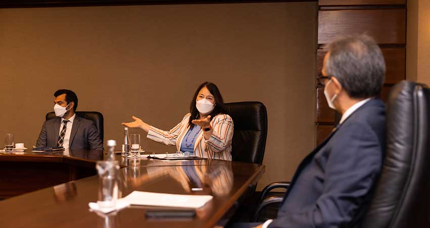 El señor José Mármol, vicepresidente ejecutivo de Comunicaciones Corporativas, Reputación y Banca Responsable del Grupo Popular; la señora Mariel Bera, vicepresidente de Área de Relaciones Corporativas y Banca Responsable; y el señor Elías Dinzey, gerente general de la Fundación Popular conversaron con la señora Latorraca sobre la visión sostenible de la organización financiera, así como acerca de la alianza estratégica que ambas organizaciones mantienen desde octubre de 2019, con la cual buscan favorecer el desarrollo sostenible de las comunidades en salud, soluciones sanitarias, preservación del medioambiente y biodiversidad.