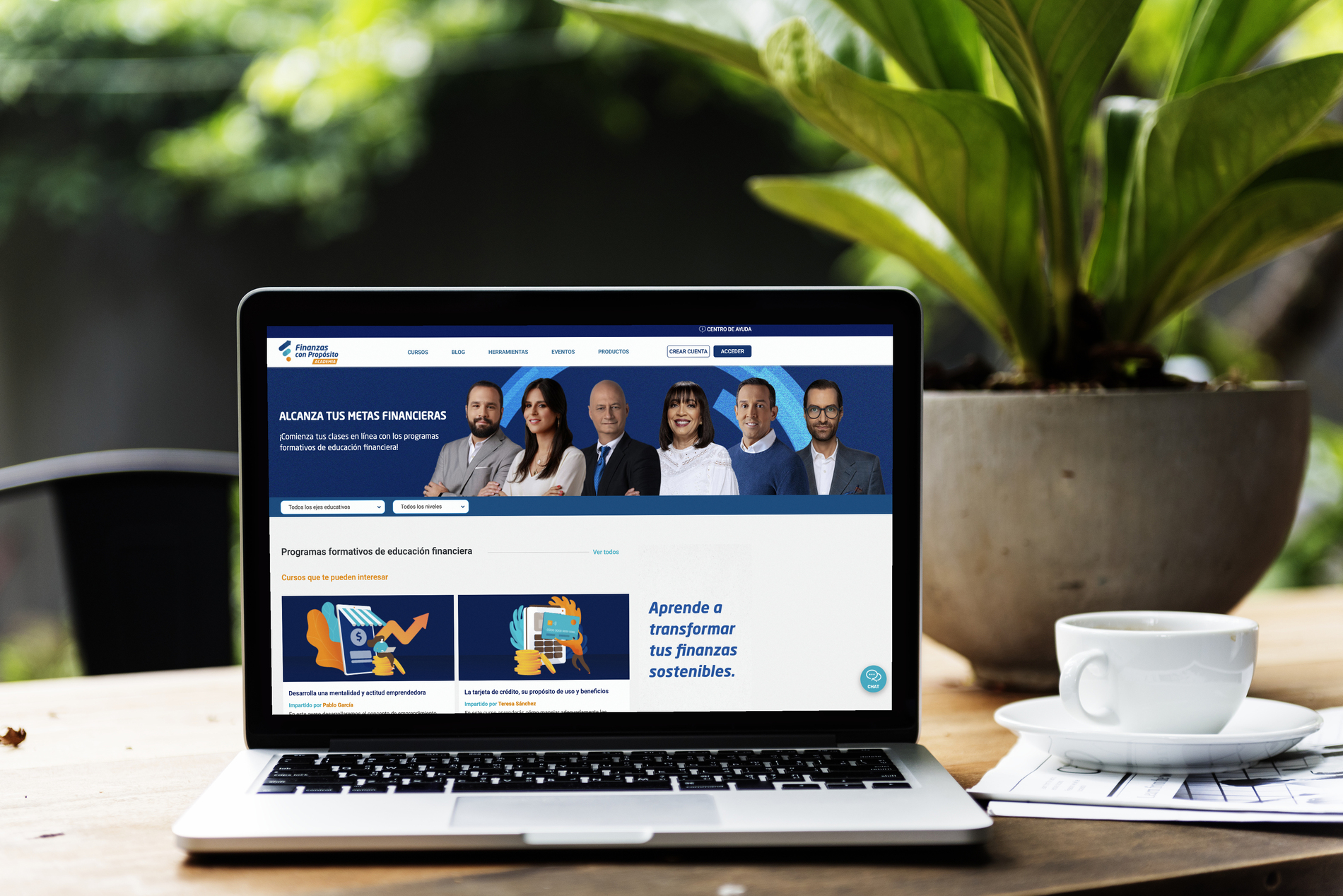 La plataforma web de contenido formativo en adición a los programas, cursos y talleres, ofrecerá simuladores de cálculo de ahorros, préstamos, inversión, retiro, fondo de emergencia y educación; se completa con guías y plantillas descargables, un blog y videos con contenido actualizado de educación financiera y consejos para el bienestar integral de las personas; se incluirá programación de eventos en vivo y un carrito de compras para actividades especiales.