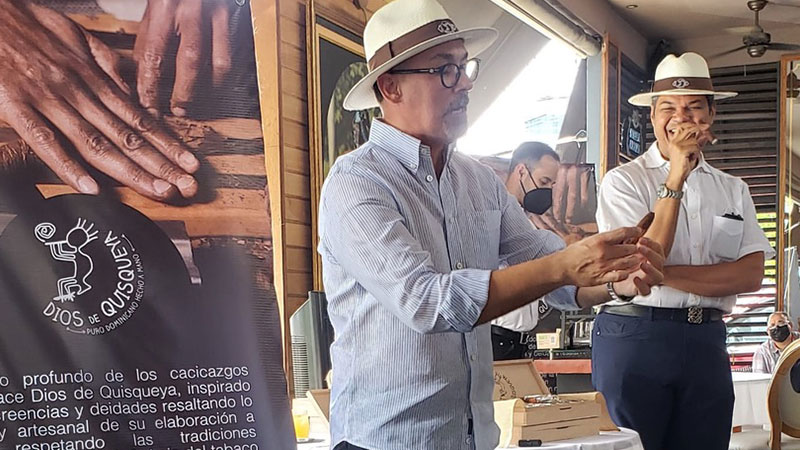 Los licenciados Hector Vinicio Mella Garrido, y Manuel Benjamin Sajour Perez, lanzaron recientemente este atractivo producto, ante un grupo de conocedores, señalando y destacando que: desde lo profundo de los cacicazgos taínos nace Dios de Quisqueya, inspirado en sus creencias y deidades resaltando lo rústico y artesanal de su elaboración a mano, respetando las tradiciones milenarias del cultivo de la hoja del tabaco para convertirlas en el verdadero “Pachuché” que fumaban nuestros tainos.
