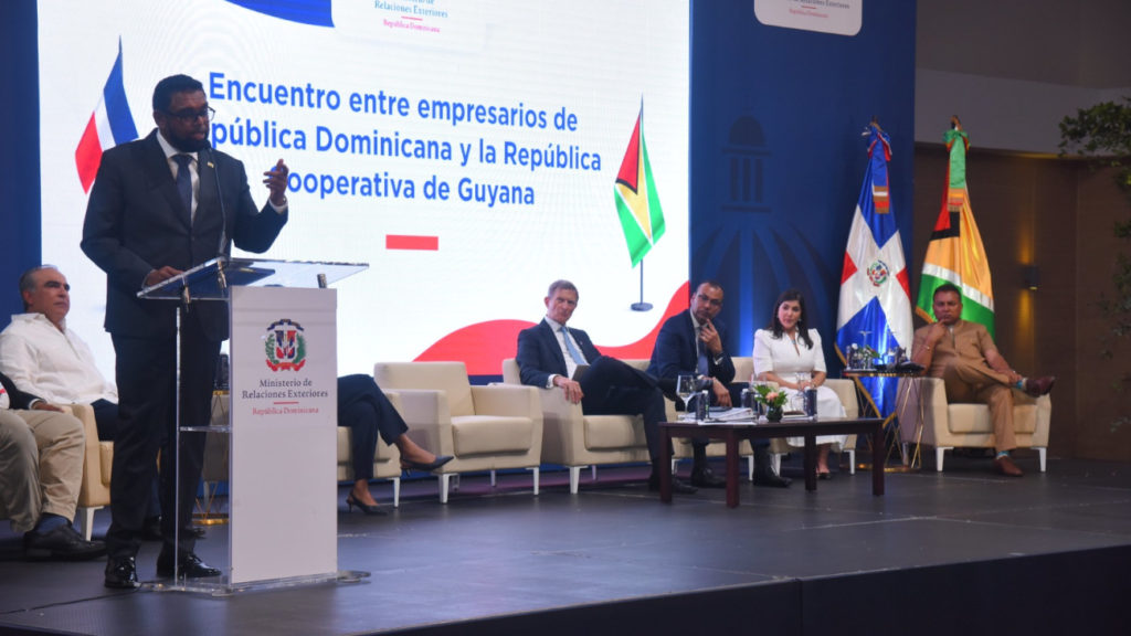 Santo Domingo.- En el marco de la visita oficial del presidente de la República Cooperativa de Guyana, Mohamed Irfaan Ali, el Ministerio de Relaciones Exteriores (MIREX), junto con el Centro de Exportación e Inversión de la República Dominicana (ProDominicana), realizó un encuentro entre empresarios dominicanos y guyaneses con el propósito de establecer vínculos y oportunidades de inversión entre ambos países.