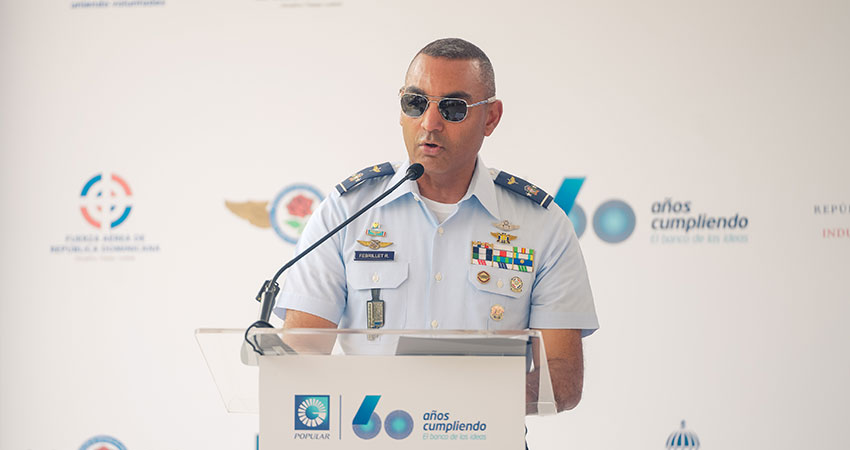 En tanto, el mayor general técnico de aviación Carlos R. Febrillet Rodríguez, comandante general de la Fuerza Aérea, durante su discurso expresó “Agradezco a Dios y a la Virgen por este maravilloso día». A su vez, agradeció a la excelentísima primera dama Raquel Arbaje, así como al Banco Popular Dominicano y al Ministro de Industria, Comercio y Mipymes, por su apoyo en la remodelación del Parque «Sargento Técnico Emilio García, FARD». Destacó la importancia del parque para el desarrollo de los niños y la comunidad, y el impacto positivo en los residentes y comunidades cercanas. El general Febrillet reconoció también el apoyo del presidente Luis Abinader en mejorar la calidad de vida de los soldados del aire y sus familias. Finalmente, exhortó a cuidar el parque y agradeció a los presentes.