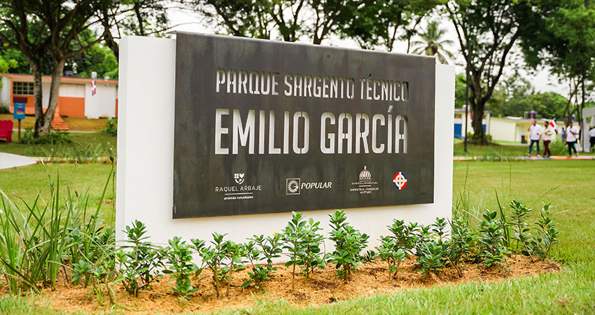 El remozamiento del Parque Sargento Técnico Emilio García forma parte de la alianza público-privada entre el Popular y el proyecto “Parques recreativos: de la industria a la comunidad», liderado por la primera dama Raquel Arbaje y el MICM, uniéndose, en esta ocasión, la Fuerza Aérea Dominicana.