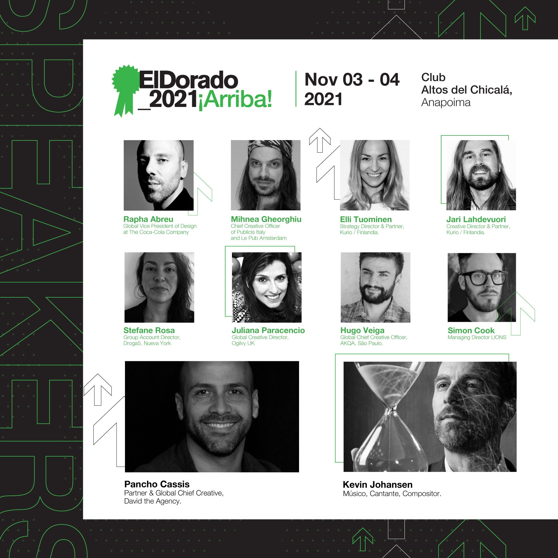 ElDorado desde el 2012 se ha consolidado como el certamen insignia de la industria creativa, representando un espacio único para que las mentes más brillantes de Colombia presenten sus piezas a competir en franca lid. El certamen cuenta con la participación de grandes líderes nacionales e internacionales de la industria, que comparten su experiencia y trayectoria en una sesión de juzgamientos y dos jornadas de conferencias y talleres. ElDorado es el espacio ideal para el diálogo entre los múltiples actores del campo de la creatividad. Un lugar especial donde las grandes marcas y agencias del país conectan con un selecto público marcador de tendencia, celebran el reconocimiento a las ideas y muestran, con su trabajo cotidiano, cómo Colombia se sitúa como referente en el panorama internacional.