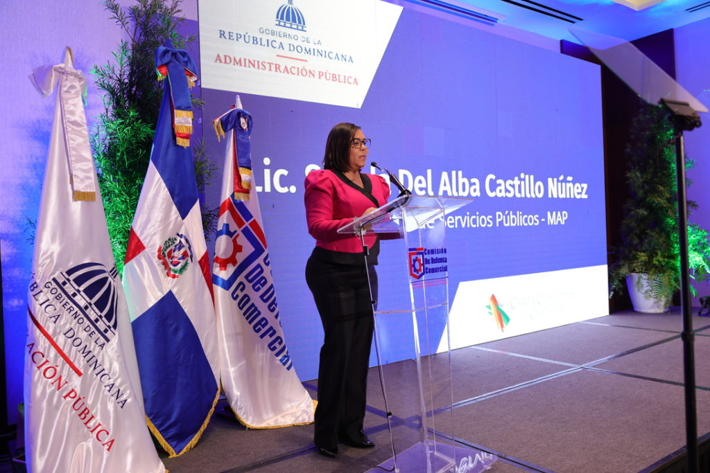 Santo Domingo, RD. – – La Viceministra de Servicios Públicos del Ministerio de Administración Pública (MAP), Sheyla Castillo, encabezó la actividad en donde se realizó el lanzamiento de la primera versión de la Carta Compromiso al Ciudadano de la Comisión Reguladora de Prácticas Desleales en el Comercio y sobre Medidas de Salvaguardias (Comisión de Defensa Comercial o CDC).