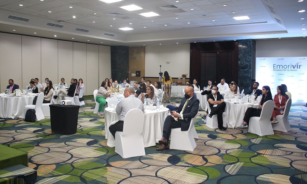 Santiago de los Caballeros, R.D. Diciembre 2021.- En un encuentro con especialistas en infectología, medicina crítica, neumología y medicina interna, la empresa farmacéutica Frifarma presentó en la ciudad de Santiago el fármaco Emorivir® cápsulas para el tratamiento ambulatorio para casos de COVID-19 con síntomas leves y moderados.