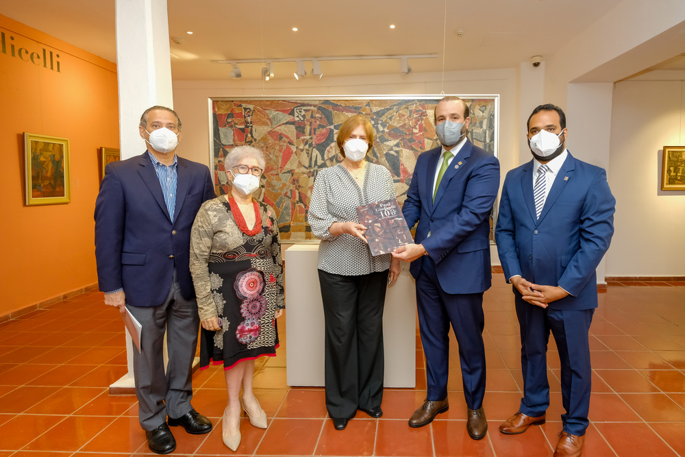 Una visita guiada de la ministra de Cultura a la exposición “Paul Giudicelli 100 Años, Obras del Museo Bellapart” para apreciar las piezas que acoge el Centro Cultural Banreservas, reveló cuán inmensa fue la producción de este creador, que se consagra como el padre e introductor en el país de la pintura abstracta y de la pintura en cerámica para la cual creaba colores, macerando materiales de vidrios rojos y azules.