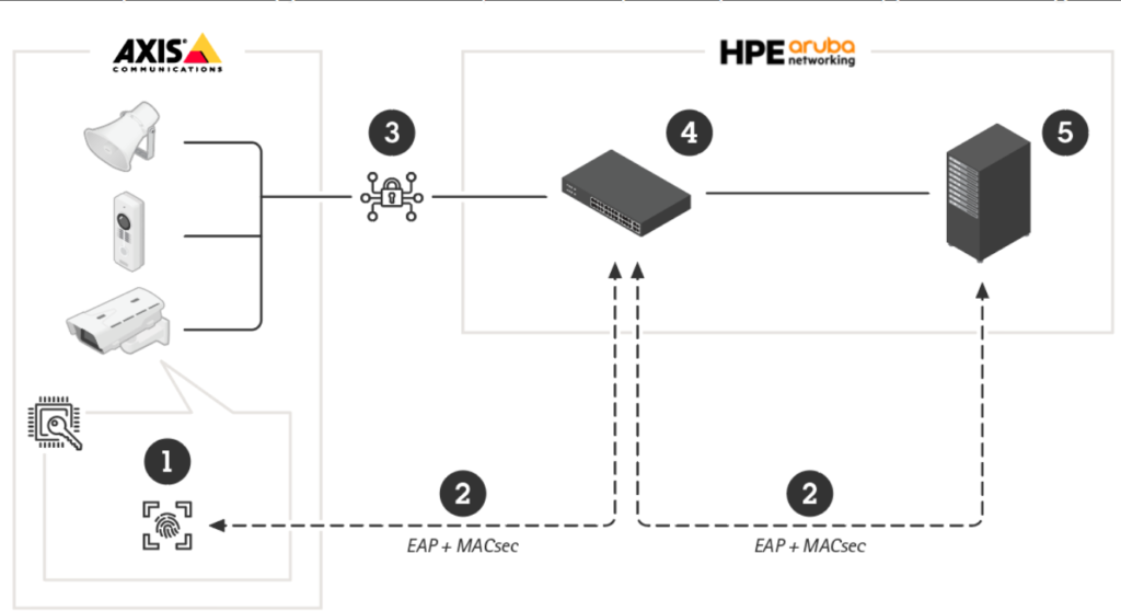 Es posible un onboarding sencillo en cualquier red compatible con los estándares IEEE, por ejemplo con el ClearPass Policy Manager de HPE Aruba Networking cuando hay una guía de integración. Para acceder a más información técnica sobre MACsec IEEE 802.1AE en AXIS OS, consulte la base de conocimiento sobre AXIS OS.