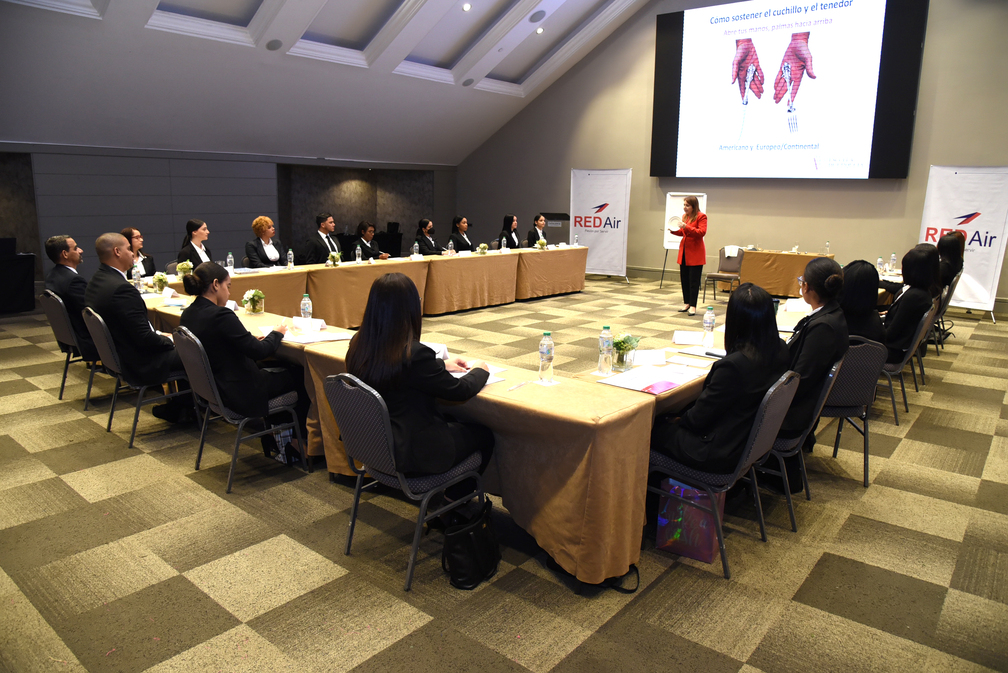 Santo Domingo, R.D. Marzo 21, 2022.- Un total de 22 tripulantes de cabina recibieron formación en materia de protocolos de etiqueta e imagen corporativa, como parte de las capacitaciones que la aerolínea RED Air realiza a sus colaboradores antes de comenzar su trabajo.