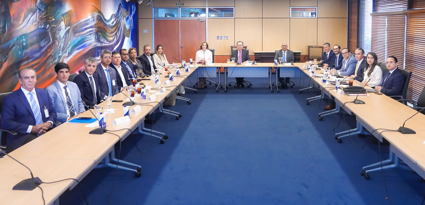 El gobernador del Banco Central de la República Dominicana (BCRD), Héctor Valdez Albizu, recibió la visita de la directiva de la Asociación Dominicana de Constructores y Promotores de la Vivienda (ACOPROVI), encabezada por su presidente, Annerys Meléndez; así como a representantes de la Cámara Dominicana de la Construcción (CADOCON), cuya presidencia ostenta Dino Campagna.