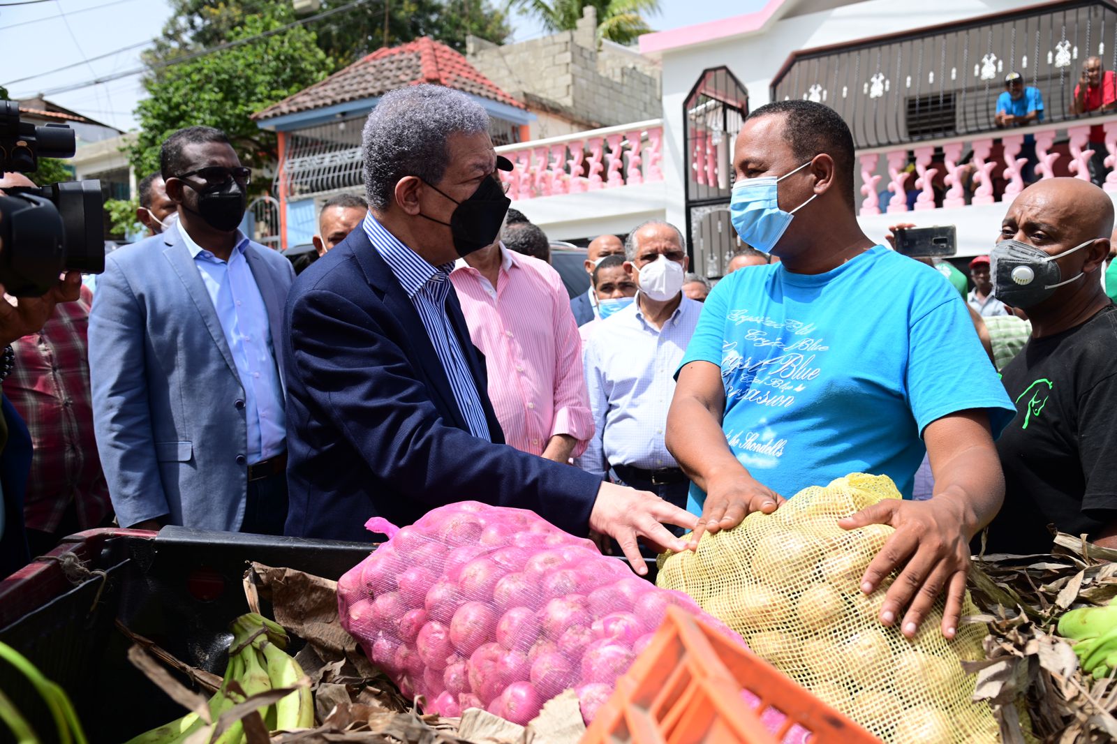 Luego, el ex mandatario, conversó con Robinsón Then, vendedor ambulante de productos agrícolas, quien ofreció al presidente de la Fuerza del Pueblo (FP), detalles sobre el aumento desmedido de ciertos productos agrícolas, la carencia y dificultad para su comercialización.
